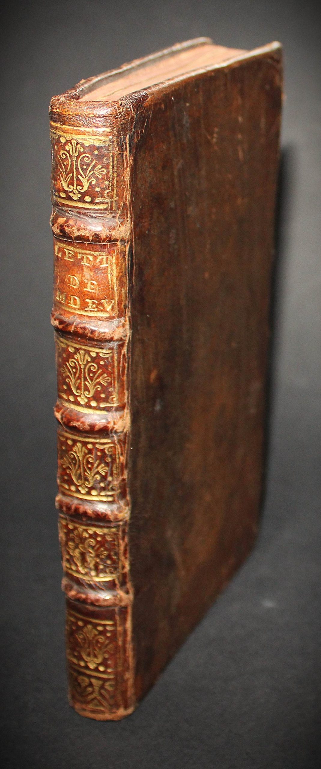 [Voltaire]. Lettres de M. de V*** avec plusieurs pièces de différens auteurs. La Haye, Pierre Poppy, 1738. In-12. 175, [3], 2 bl. pp. Full contemporary tan calfskin, spine with 5 raised bands, title label in fawn morocco, edges speckled with red.